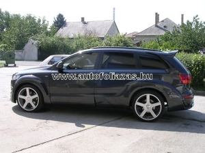 Audi Q7 "B" oszloptól hátra 5% fényáteresztő képességű hővédő fólia (HP05), a 2 első ablakon HP35 típusú hővédő fólia látható.