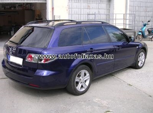Mazda 6 combi "B" oszloptól hátra HP05 típusú hővédő fólia látható, a 2 első ablakon HP35 típusú hővédő fólia.