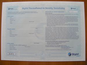 Autófóliáink a Gépjármű Felügyelet "H" minősítésével rendelkeznek. A fóliák telepítését követően ügyfeleink sorszámozott műbizonylatot kapnak, a "H" engedélyszámot ultravékony speciális poliészter öntapadó formájában illesztjük az üveg és a fólia közé.