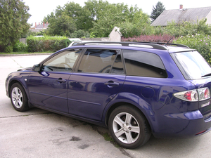 Mazda 6 combi "B" oszloptól hátra HP05 típusú hővédő fólia látható, a 2 első ablakon pedig HP35 típusú hővédő fólia.